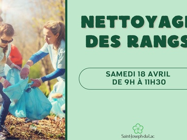 Participez à l’activité de nettoyage des rangs prévue le samedi 18 avril 2026 en vous présentant à 9h dans le stationnement arrière de l'hôtel de ville située au 1110, chemin Principal.