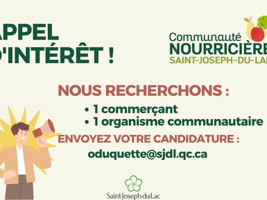 Nous sommes à la recherche d’un commerçant et d’un organisme communautaire souhaitant s’impliquer au sein du comité communauté nourricière.