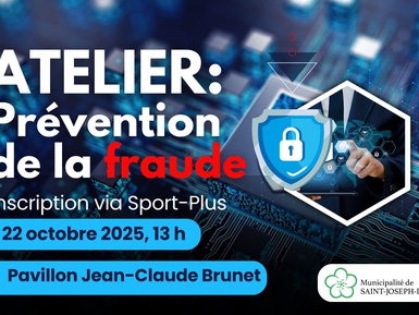 Joignez-vous à nous le mardi 22 octobre à 13 h au Pavillon Jean-Claude-Brunet pour un atelier gratuit de 90 minutes sur la prévention de la fraude.
