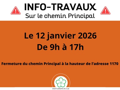 Pour accéder au secteur, il sera nécessaire d’emprunter un chemin de détour : montée du Village → rang du Domaine → rang Ste-Germaine → chemin Principal.